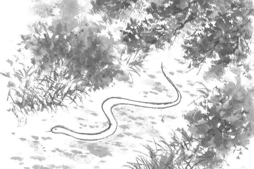 朝早う、散歩するじい様の前を長い白ヘビがニョロリニョロリと通り過ぎた。