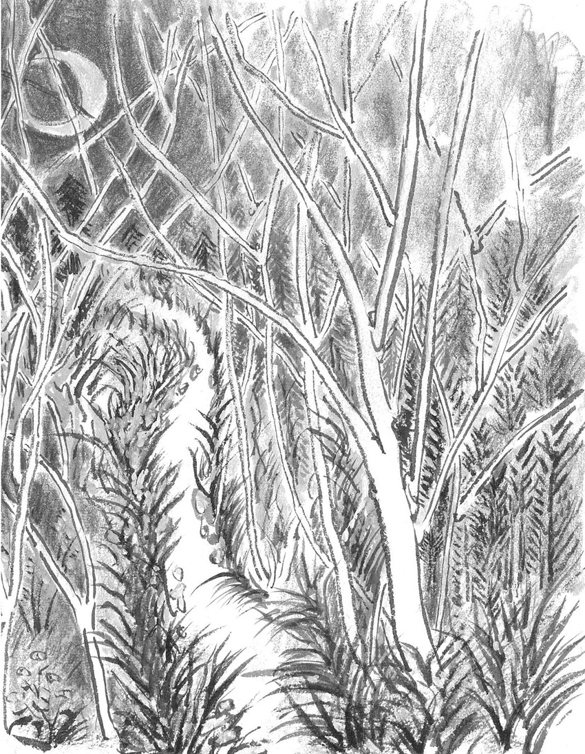 林の中に古ぼけた尼寺の跡地も見受けられるが、話は何もない。