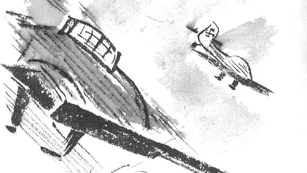 畑仕事をしながら、この様子を見ていた金造さは、飛行機から人が落ちて来たのはてっきり敵兵だと思いこみ、家まで走った。竹槍を持って来ると、苦しそうにもだえている操縦士の胸を突き刺そうとした。しかし、よく見ると日本兵だった。あわてて、近くの医院へ駆け込み、医者どのを現場へ連れて行った。