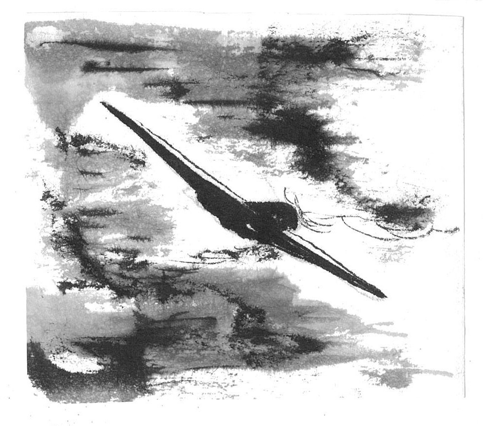 先生も生徒も皆外へ出て見ると、空から黒く長い物がきりもみ状態で落ちていくのが見えた。