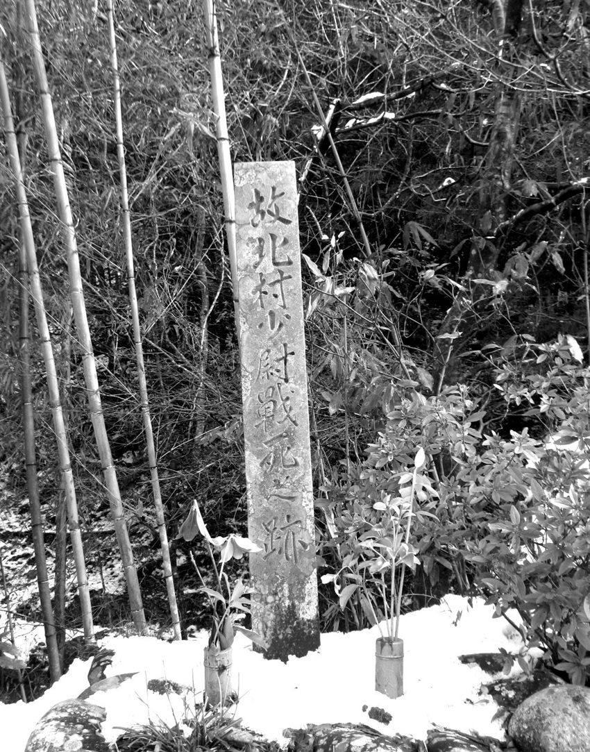 北村少尉の落下地点には、「故・北村少尉戦死之跡」の墓標が建てられ、今でも、しきびや季節の花が絶えることがない。