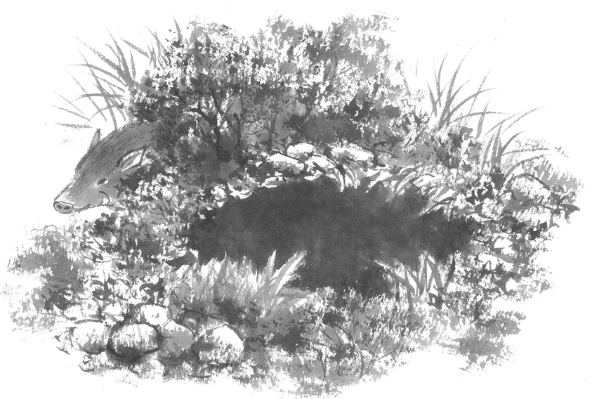 それは猪の子どもでした。何とかひっくくって家へ引っぱって行きました。次の日も次の日も簡単に猟ができるので楽しい毎日が続いておりました。