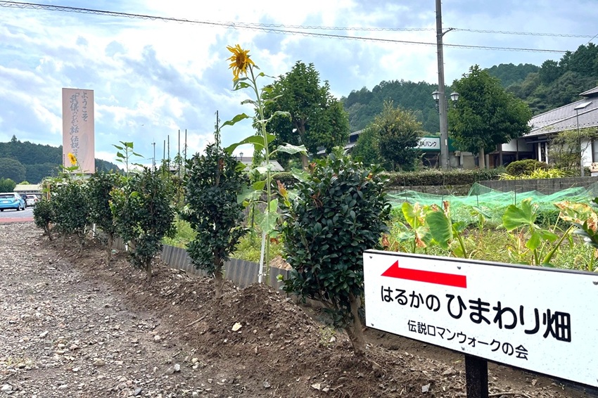 道の駅平成にて「伝説ロマンウォークの会」が育てた「はるかのひまわり」が開花しました。