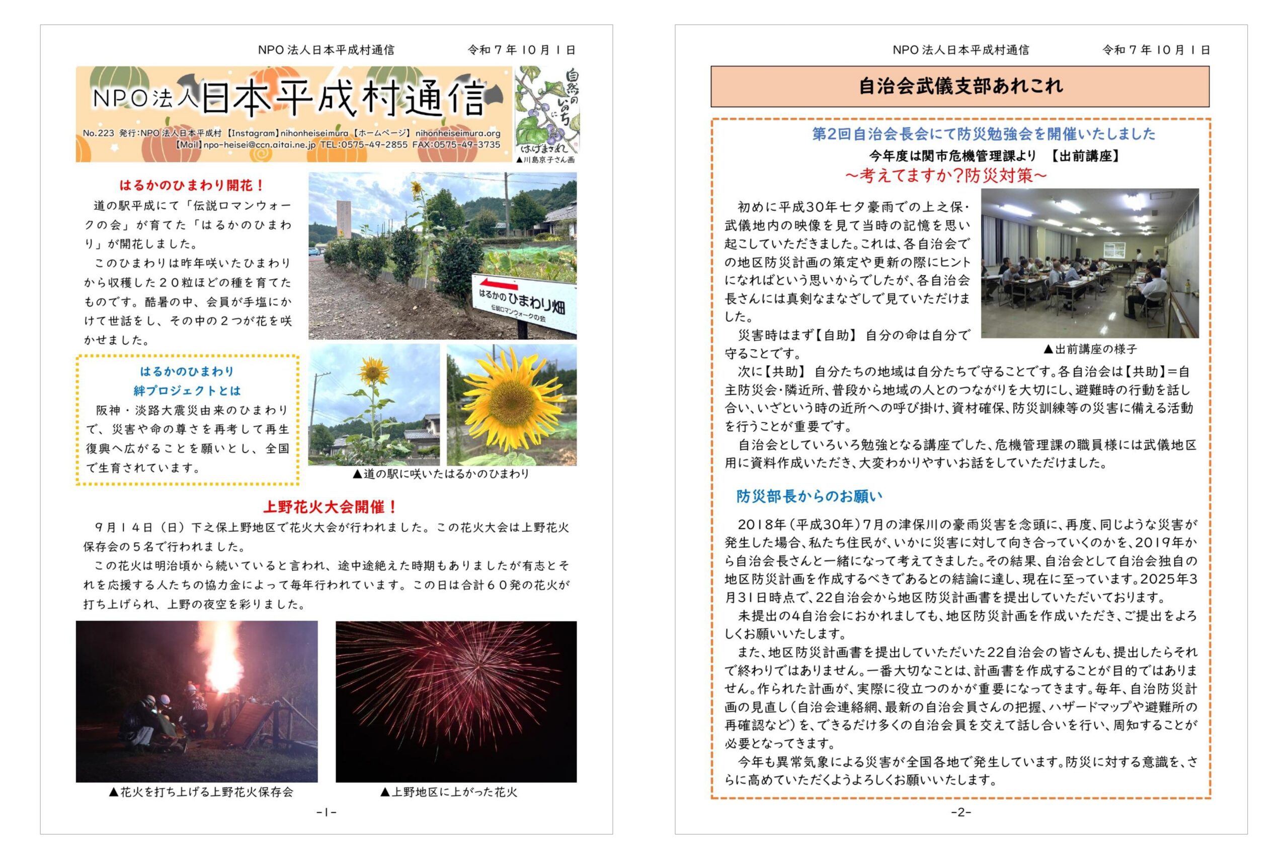 日本平成村通信は2006年1月号からスタートし、今回で223回目の発行です。