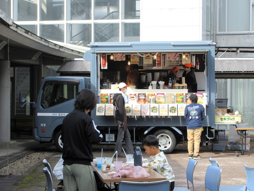 同日、学習センター中庭にて小屋名の円通寺住職岡田さんが代表の「いちょうの会」と、関市役所子ども家庭科主催の子ども食堂が開かれました。こちらは関市で子ども食堂を広めるための一環として開催されました。