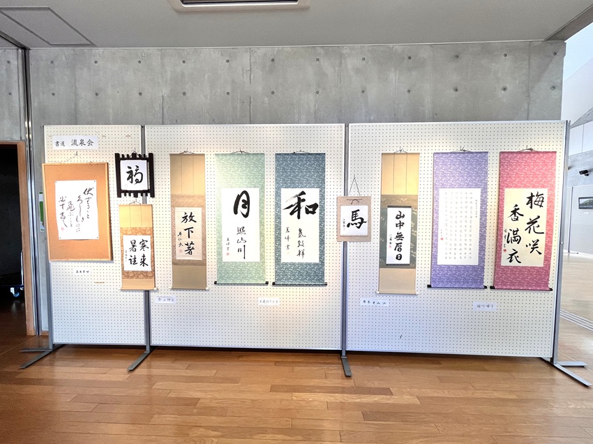 流泉会(書道)会場にはサークルや個人の作品が展示され、丁寧に制作された作品が見る人を楽しませました。