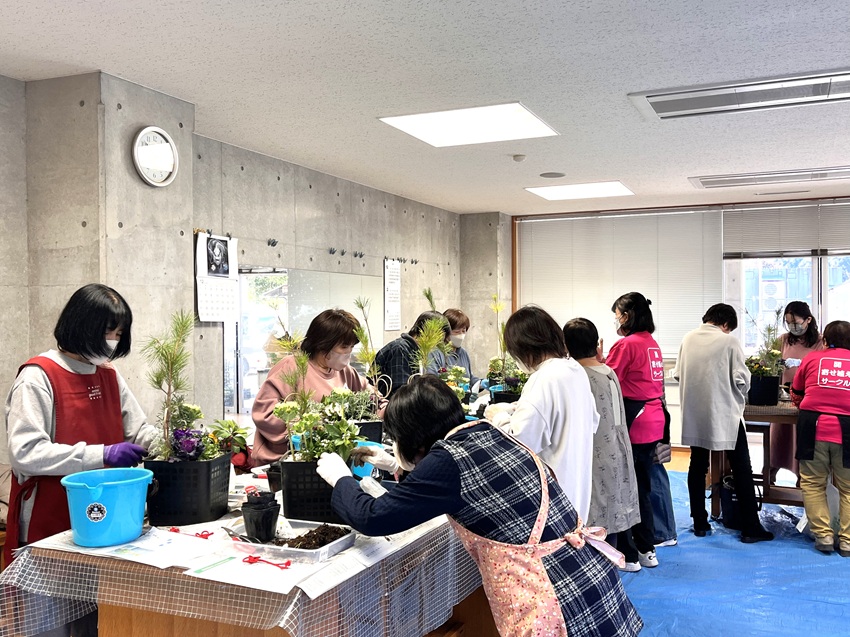 12月10日(水)、毎年人気の寄せ植え教室を今年も開催しました。午前午後、合わせて38名が参加しました。