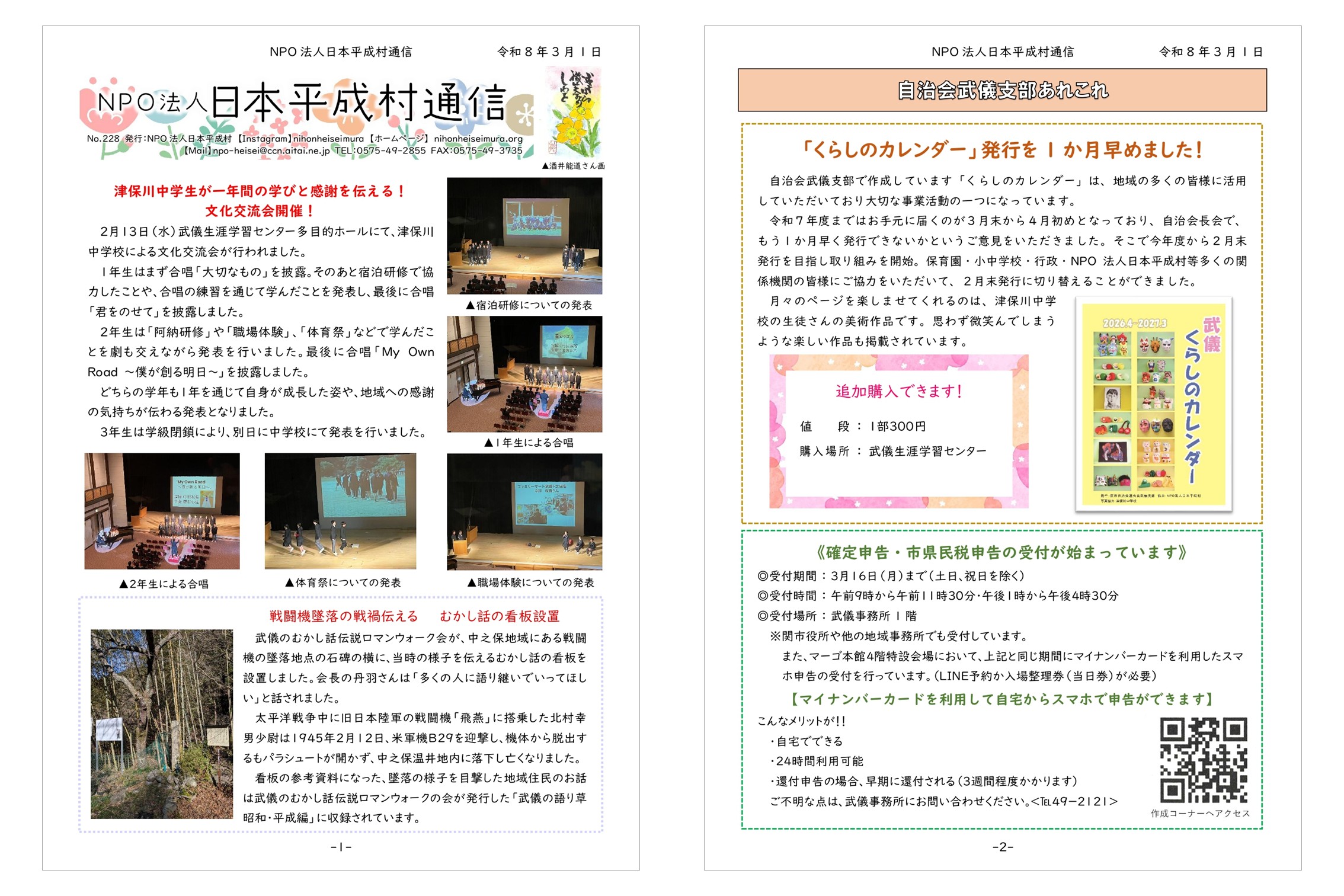 日本平成村通信は2006年1月号からスタートし、今回で228回目の発行です。