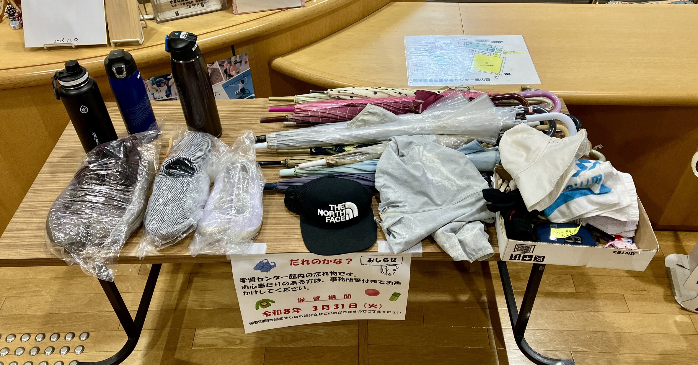 保管期間:令和8年3月31日(火)まで武儀生涯学習センターでお預かりしている拾得物(貴重品を除く)のうち、保管期間が過ぎているものは令和8年3月31日(火)を目途に処分いたします。