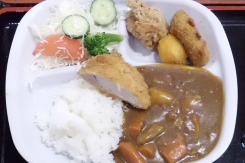 当日の、揚げ物やサラダのついた豪華なカレー開催のテーマは「おいしい食事をしながら、おしゃべりし、宿題を教えあいながら、わいわいと楽しい時間を過ごしましょう」です。