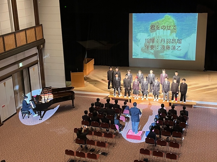 1年生による合唱1年生はまず合唱「大切なもの」を披露。そのあと宿泊研修で協力したことや、合唱の練習を通じて学んだことを発表し、最後に合唱「君をのせて」を披露しました。